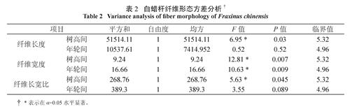Table 2 Variance analysis of fiber morphology of Fraxinus chinensis