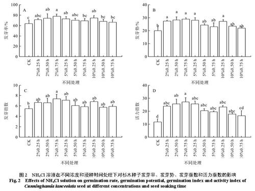 Table 1 Different treatment methods2.2 NH4Cl对杉木种子萌发的影响